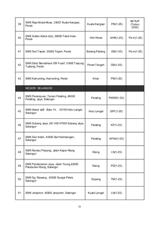 Senarai Sekolah Menengah di Negeri Perlis Tahun 2017 Explore Preview Download Education. Senarai Sekolah Menengah di Negeri Perlis Tahun 2017. Scribd is the worlds largest social reading and publishing site.